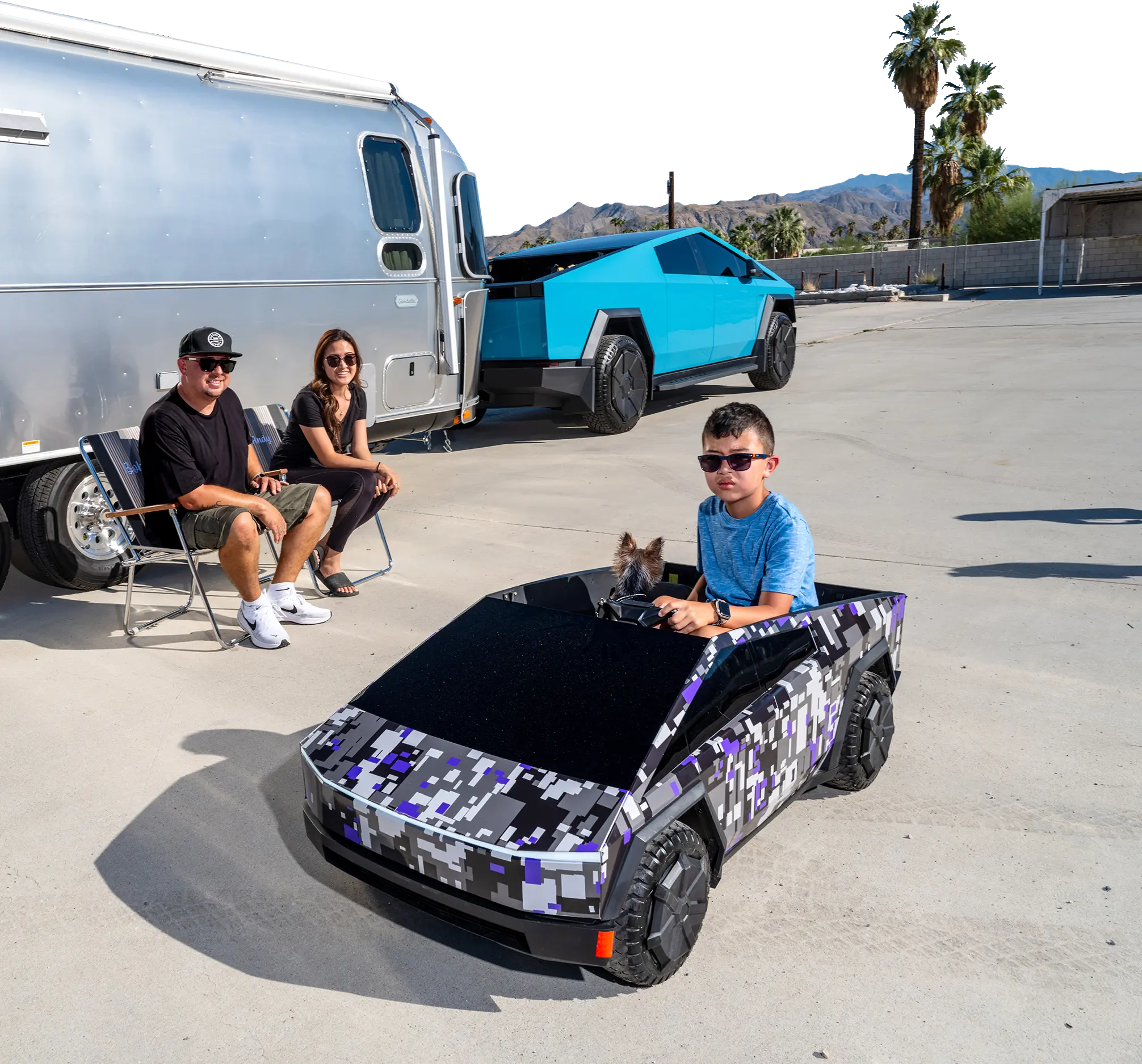 Oh, I love it. Now, everything else to me—and I'm not talking down on anybody else's stuff, I still love a lot of other vehicles out there—but everything else, to me, those soft lines and everything, it all kind of blends together. And the Cybertruck obviously stands out. I mean, we take the trailer out a lot, and I can go to a campground and there's 50 kids that come out: "Cybertruck, Cybertruck, Cybertruck." I carry little toys inside the trunk so I can pass them out and give them to kids, and they love it. It's a lot of fun.