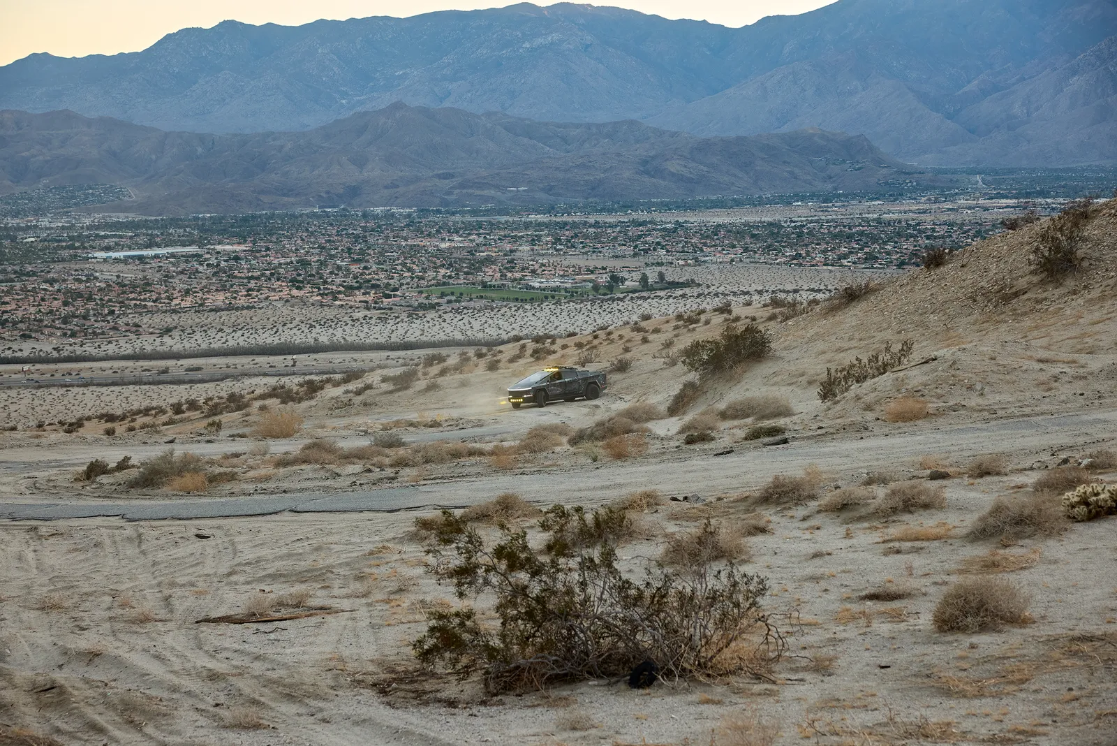 Frank: It took me really about three days to get used to the truck, because it's so different to drive. For one thing, it's the only vehicle [in the US] that has a steer-by-wire, meaning there's no physical connection between the wheel and the tires. It's all electronic. That takes a bit of getting used to. When you put it in sport mode, it squats down and tightens the suspension, and with that 600 horsepower and everything—I'm whipping up the 74. It's a sports car.